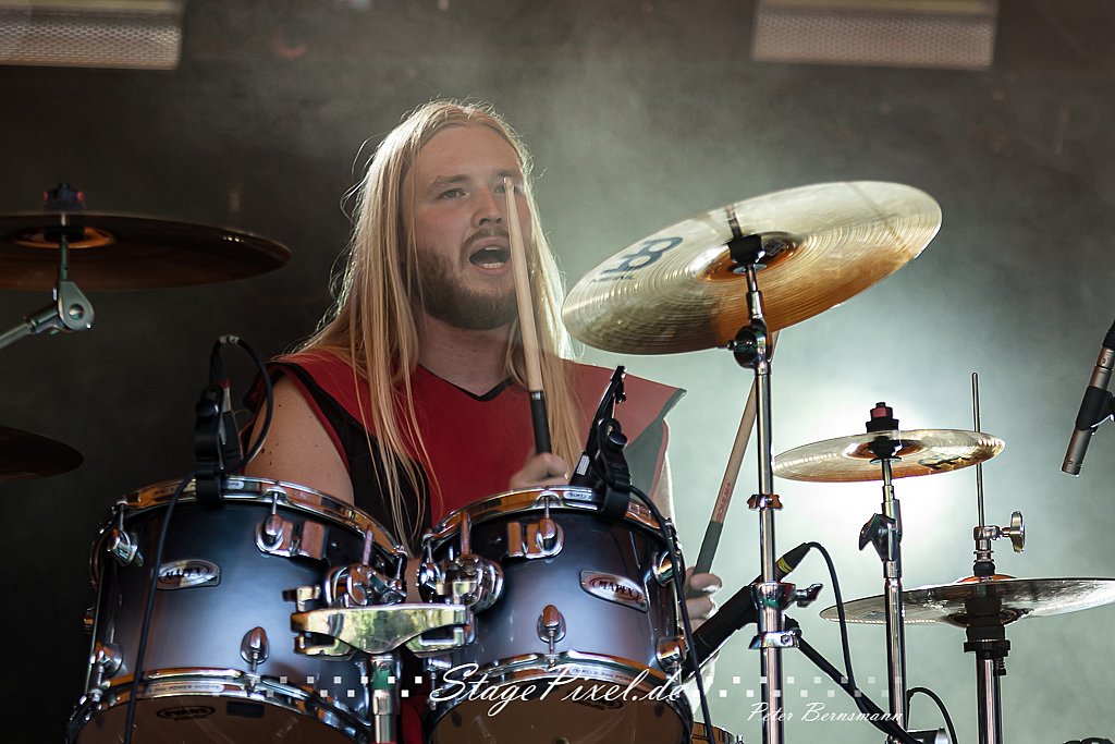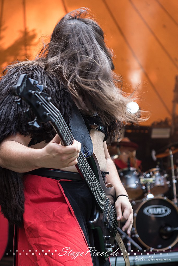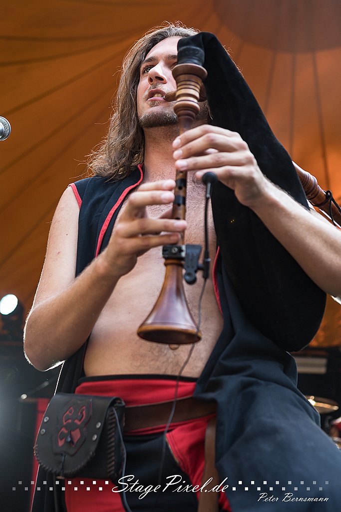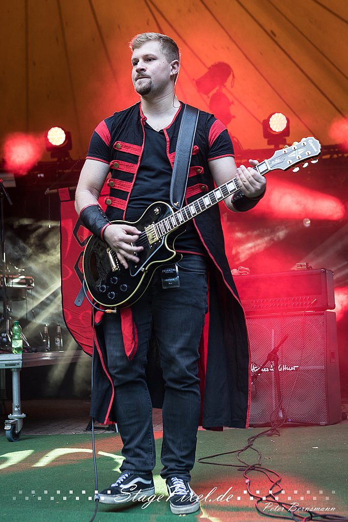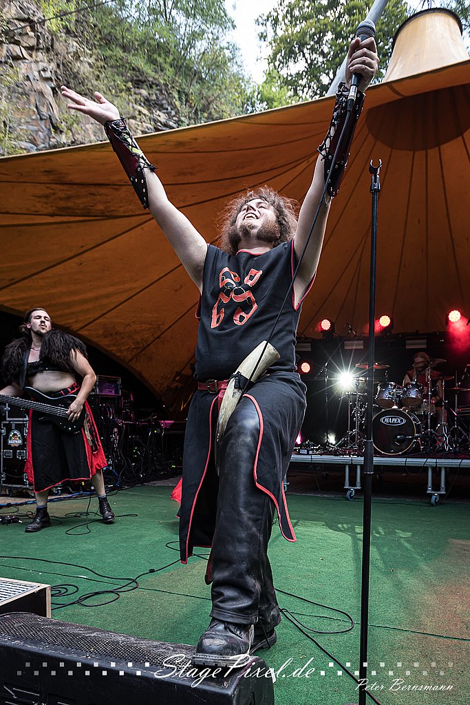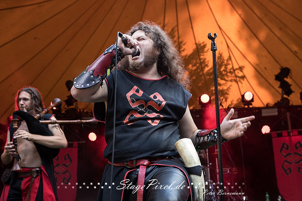 Das Feuertal Festival auf der Waldbühne Hardt in Wuppertal ist jedes Jahr im August ein beliebter Treff der schwarzen Szene. Bei ausverkaufter Veranstaltung feierten am 31.08.2019 rund 2.500 Fans bei bester Laune und schönstem Wetter. Lediglich ein Platzregen sorgte für eine kurze Unterbrechung der Veranstaltung, denn auf der Bühne sind nicht alle Flächen regensicher.