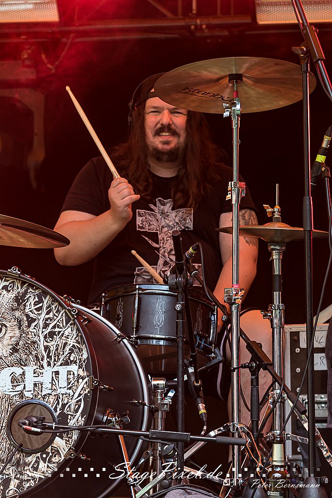 Das Feuertal Festival auf der Waldbühne Hardt in Wuppertal ist jedes Jahr im August ein beliebter Treff der schwarzen Szene. Bei ausverkaufter Veranstaltung feierten am 31.08.2019 rund 2.500 Fans bei bester Laune und schönstem Wetter. Lediglich ein Platzregen sorgte für eine kurze Unterbrechung der Veranstaltung, denn auf der Bühne sind nicht alle Flächen regensicher.