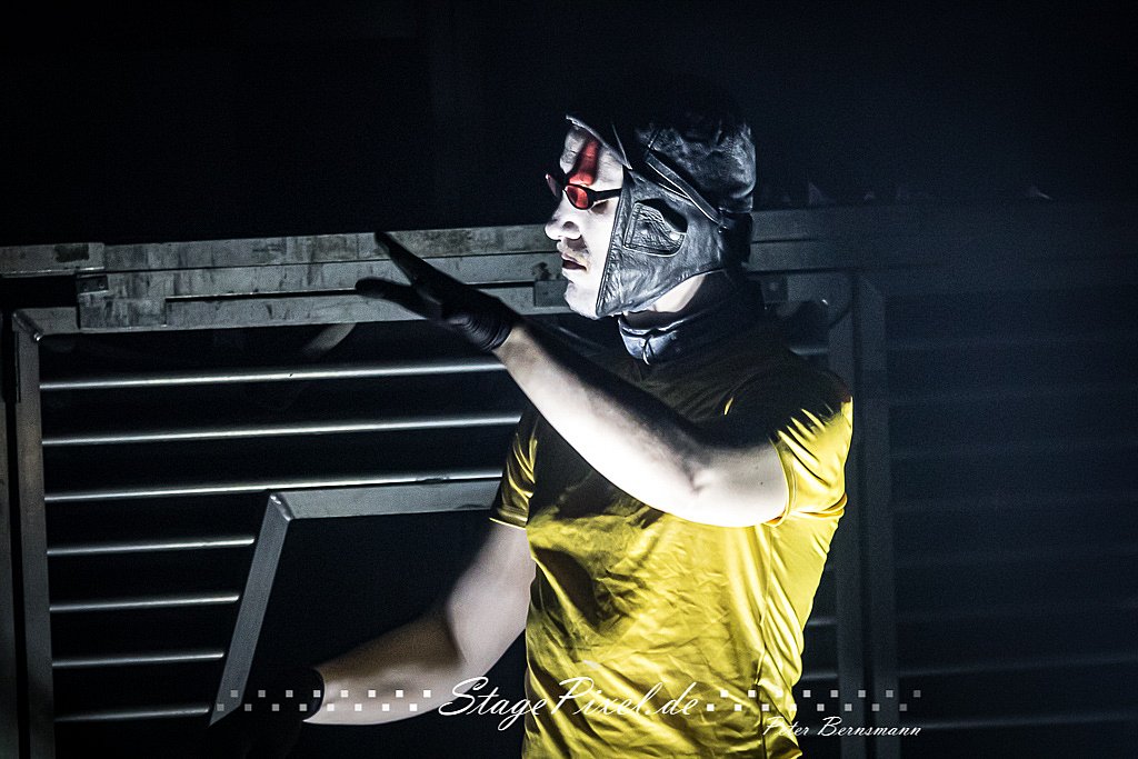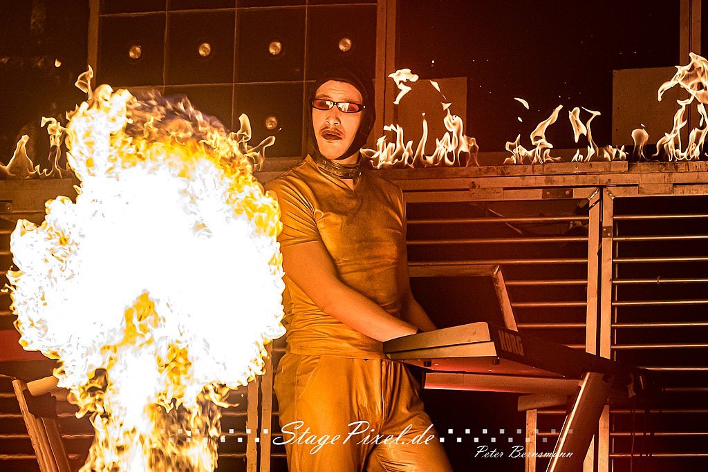 Zum ersten Mal war in Oberhausen der neue Puppenwagen dabei. "Puppenwagen" ist dabei schon etwas verniedlichend. Dieses Gerät so riesengroß, das René, der Sänger der Band, dessen Griff nur so gerade eben erreichen kann, um den Wagen zu schieben. Und natürlich, wie es sich gehört, ist der Wagen vollgestopft mit Pyrotechnik. A propos Herzblut: der Puppenwagen ist selbstredend eine Eigenentwicklung. :-)