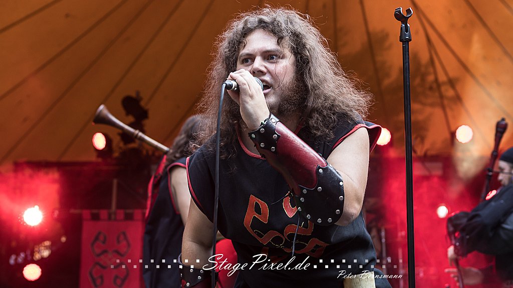 Das Feuertal Festival auf der Waldbühne Hardt in Wuppertal ist jedes Jahr im August ein beliebter Treff der schwarzen Szene. Bei ausverkaufter Veranstaltung feierten am 31.08.2019 rund 2.500 Fans bei bester Laune und schönstem Wetter. Lediglich ein Platzregen sorgte für eine kurze Unterbrechung der Veranstaltung, denn auf der Bühne sind nicht alle Flächen regensicher.