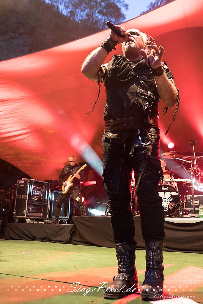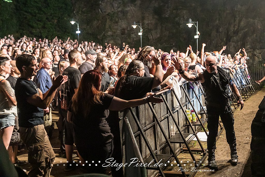 Das Feuertal Festival auf der Waldbühne Hardt in Wuppertal ist jedes Jahr im August ein beliebter Treff der schwarzen Szene. Bei ausverkaufter Veranstaltung feierten am 31.08.2019 rund 2.500 Fans bei bester Laune und schönstem Wetter. Lediglich ein Platzregen sorgte für eine kurze Unterbrechung der Veranstaltung, denn auf der Bühne sind nicht alle Flächen regensicher. Doch der Headliner Subway To Sally konnte bereits eine Viertelstunde vor der geplanten Zeit beginnen. Und so konnte dieser sein komplettes Set trotz Zwangspause spielen.