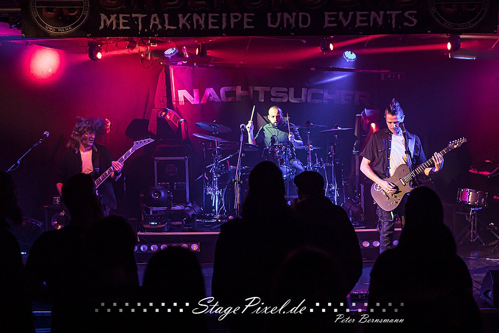 heißt das kleine feine Festival von und mit der Band Nachtsucher. Es findet schon zum vierten Mal statt, es gehört immer noch zu den Geheimtipps in der Szene."Nachtsucher & Friends" zeichnet sich, im Unterschied zu vielen anderen Veranstaltungen, durch Freundschaft und Fairness aus. Obwohl Nachtsucher hier namensgebend sind, treten Sie nicht als Headliner auf. Sie spielen zwischen den anderen Bands des Abends, jeder Band steht die gleiche Spielzeit zur Verfügung.